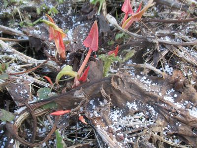 | Сквозь лесную и луговую подстилку пробиваются первые растения.