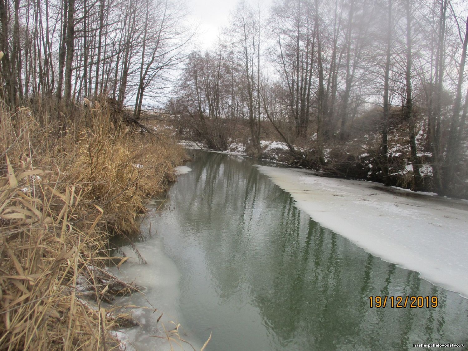 Речка мало-помалу освобождается ото льда, как весной, местами она почти полностью чистая