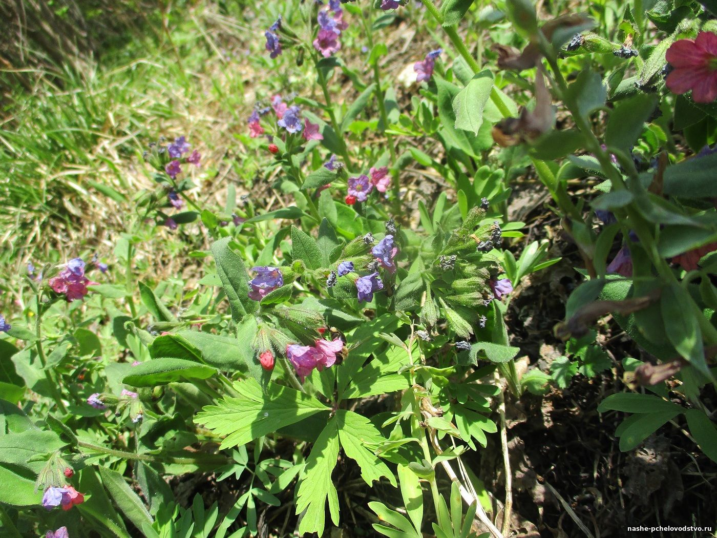 | В лесу ещё цветёт медуница, многие растения уже отцветают, но пчела на них всегда есть.