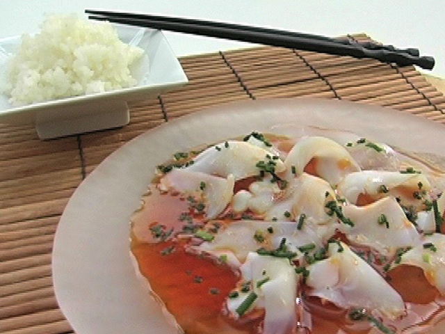 Вкусное блюдо по старинному рецепту.Состав:кальмар — 2 штуки;пряное масло — 30 мл;соевый соус — 40 мл;кунжутное масло — 30 мл;зеленый лук — 1 столовая ложка;рис — 50 гр.